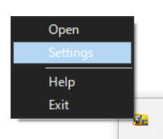 Right-click the app icon in the tray and click "Settings".